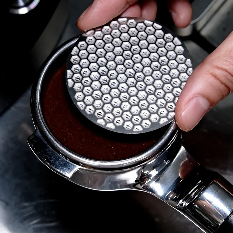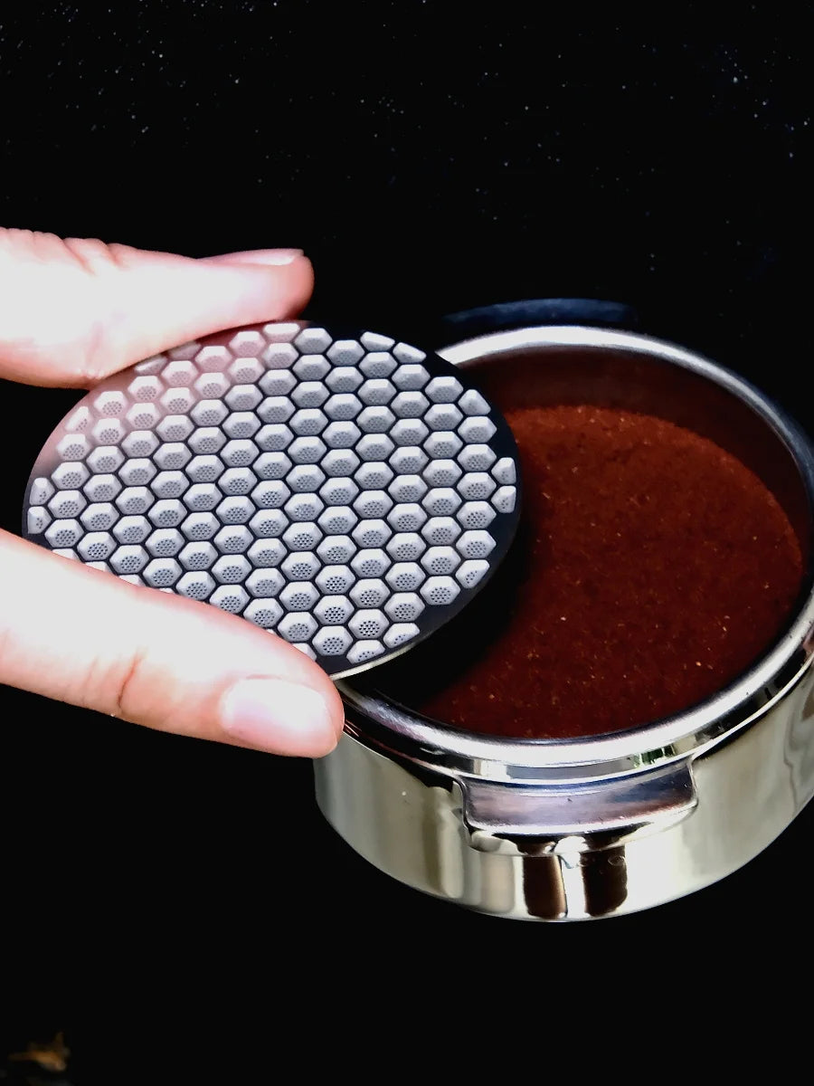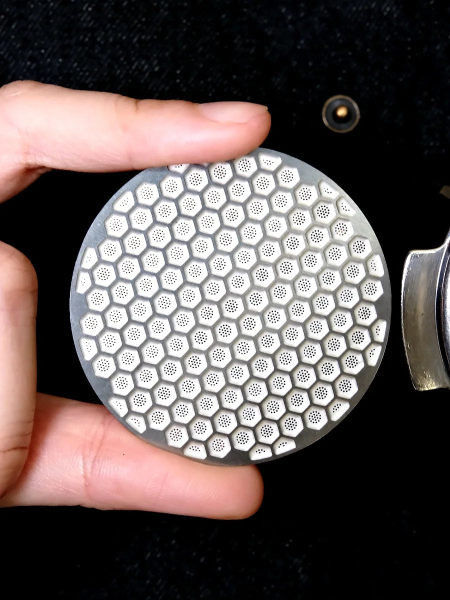 - شاشة قرص رفيعة بسمك 0.8 مم: سُمك هذه الشاشة القرصية 0.8 مم. وهي أرق من شاشات أقراص الإسبريسو العادية، لذا لا داعي للقلق بشأن تقليل كمية المسحوق عمدًا. في حال وجود برغي داخلي في رأس التخمير، لا نوصي باستخدام شاشة القرصية.