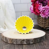 سيراميك أصفر على طراز أوريغامي V60 مع قاعدة خشبية 01
