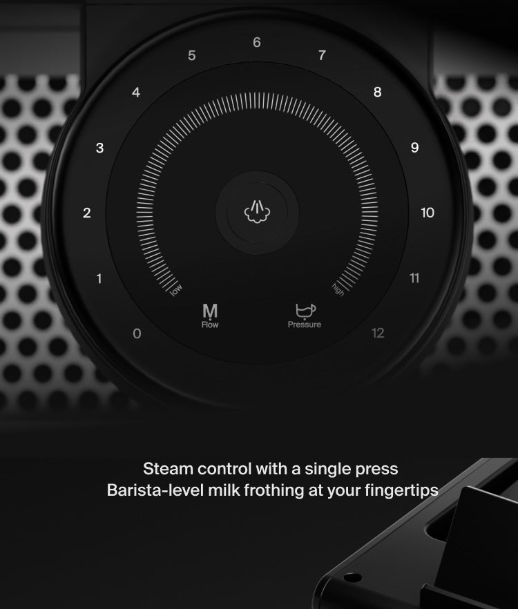At its core, Lita features a dual-core system with two noiseless electromagnetic pumps, ensuring ultra-fast pressure build-up and precise control (0–9 bar, accurate to ±0.1 bar). Its Intelligent Disc system delivers intuitive disc-style operation with precise touch controls, allowing you to fine-tune pressure and flow exactly as you desire.