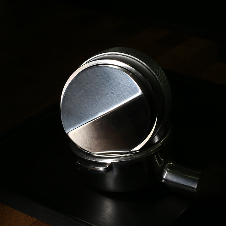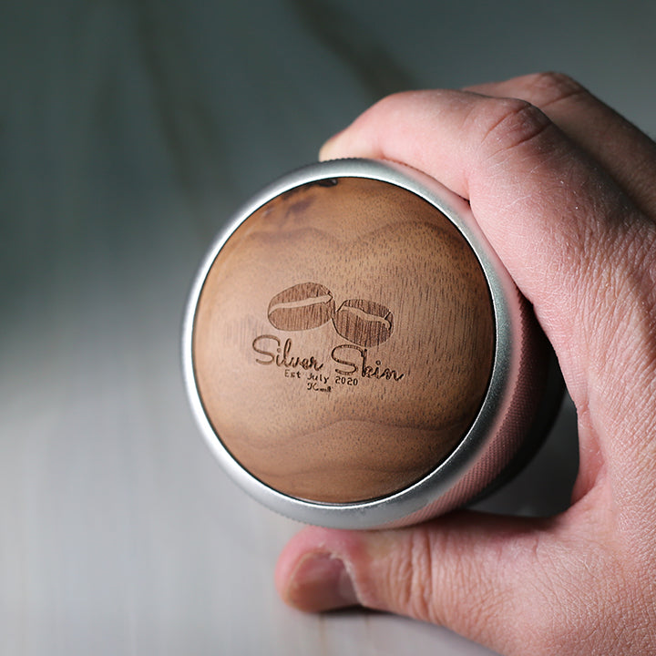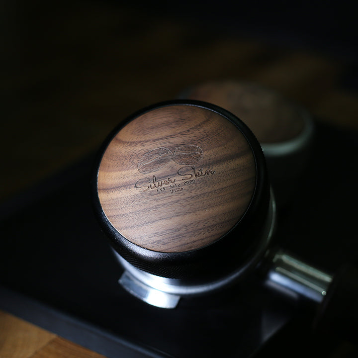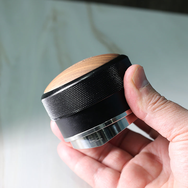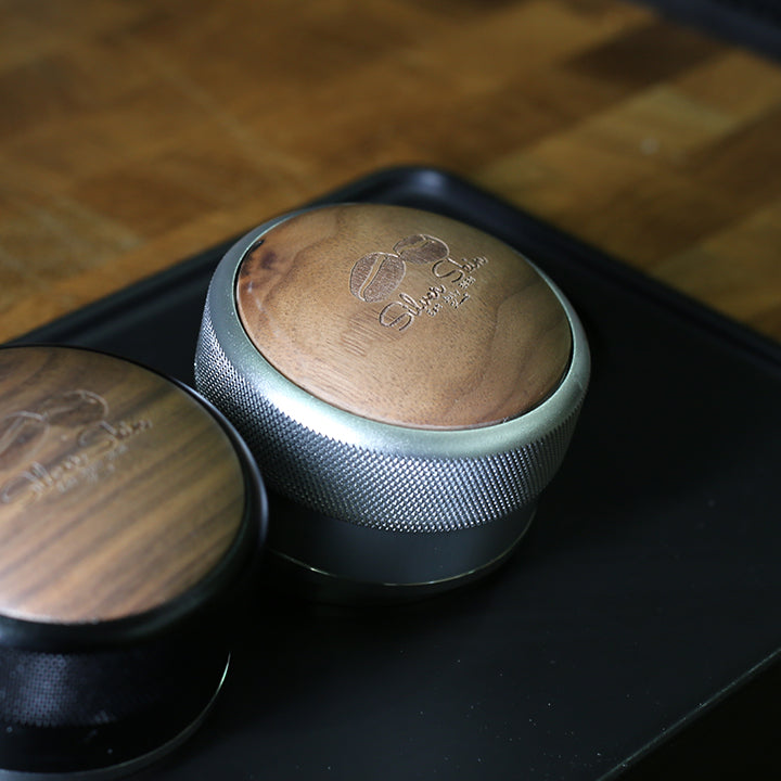 يقوم الموزع الخشبي بترتيب قطع صغيرة من حبوب القهوة المطحونة داخل مرشحات القهوة