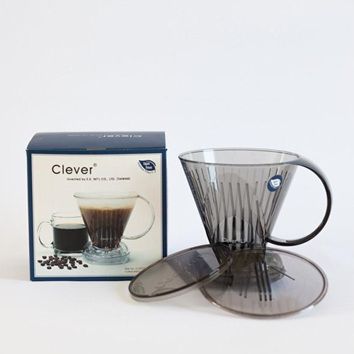 The Clever Coffee Dripper combines the best features of French Press and filter drip brewing, eliminating the drawbacks of each. By adding a stopper to a filtercone, the Clever Coffee Dripper combines control over steeping time with a sediment free cup.The dripper will fit on cups and thermoses with tops wider than 1.5" and less than 3.75" in diameter. Of course, if you put the dripper on a very narrow thermos you should make sure it is stable. Cleaning: Cleaning the Clever Coffee Dripper is ver easy. Just dispose of the used grounds and filter and rinse. Do not allow residue to build up in the filter. Lightly scrub the cone with very hot water and a sponge or brush, taking care to clean shut off mechanism lightly from the top. If necessary, use a detergent-free cleaner designed for carafes and filtercones.