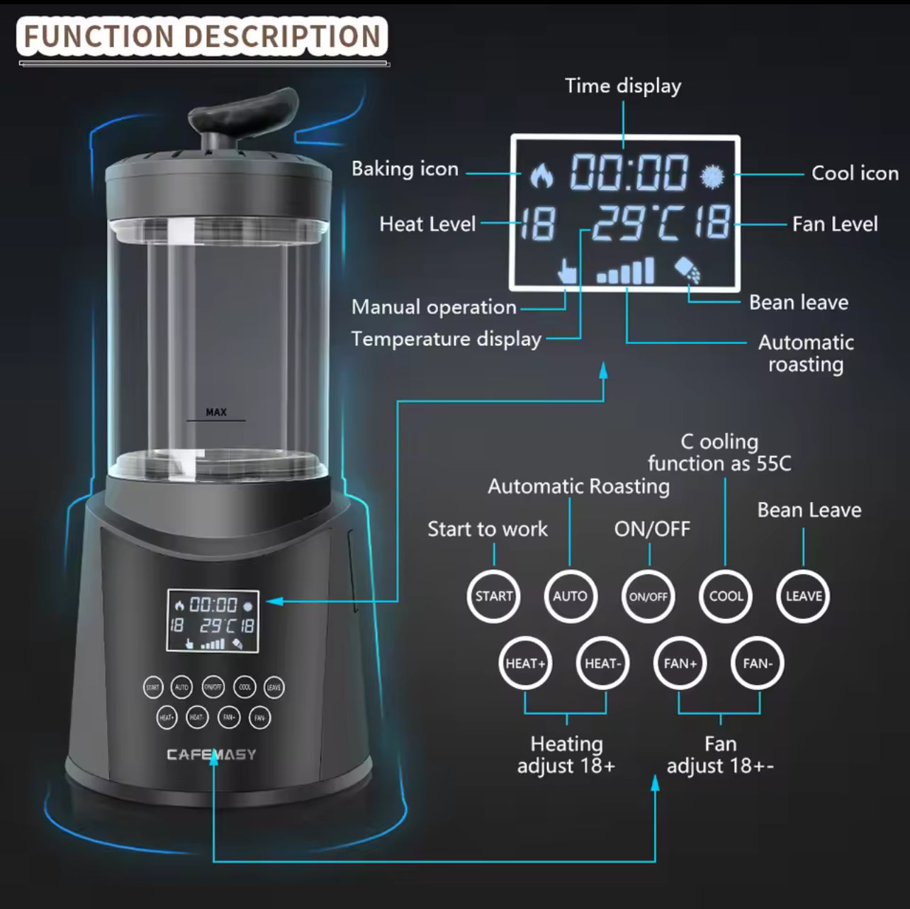 CAFEMASY New 300g Smart Coffee Bean Air Roaster Auto & Manual Modes Coffee Roasting Machine With Digital Display